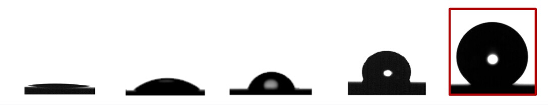 冷凝水难以积累:冷凝水滴的接触角>150°,减小了冷凝水滴与材料表面的黏附力,使冷凝水滴易于从材料表面滚落,难以积累。
