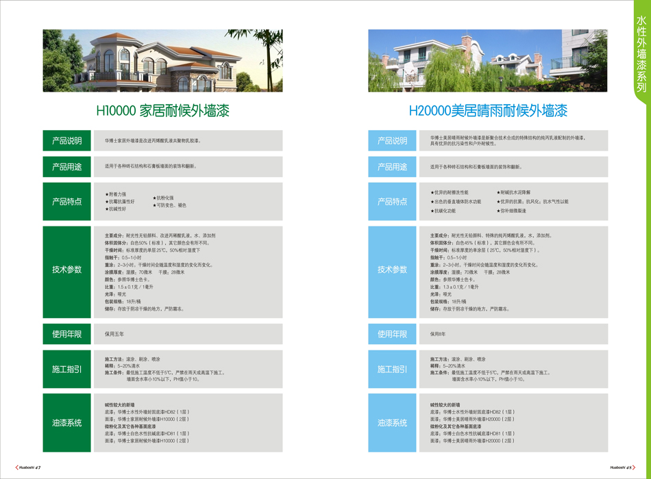 『华博士』家居耐候外墙漆,采用优质聚合物乳液精制而成,可调缤纷色彩,色泽柔和,漆膜平滑,且遮盖力强,流平性好,施工简单方便,在营造多姿多彩家居生活的同时,更能保持墙面效果持久亮丽。