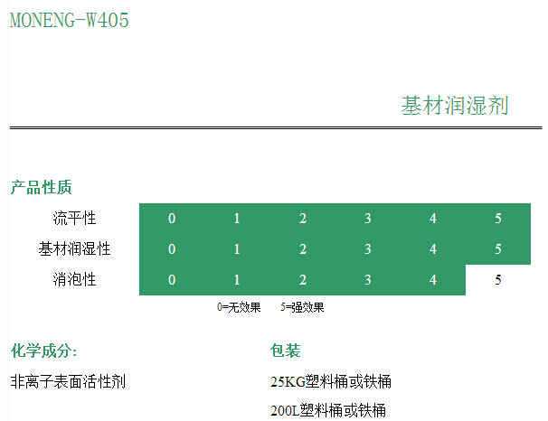 规格型号: MONENG-W405基材润湿渗透剂(低表面张力、帮助消泡)